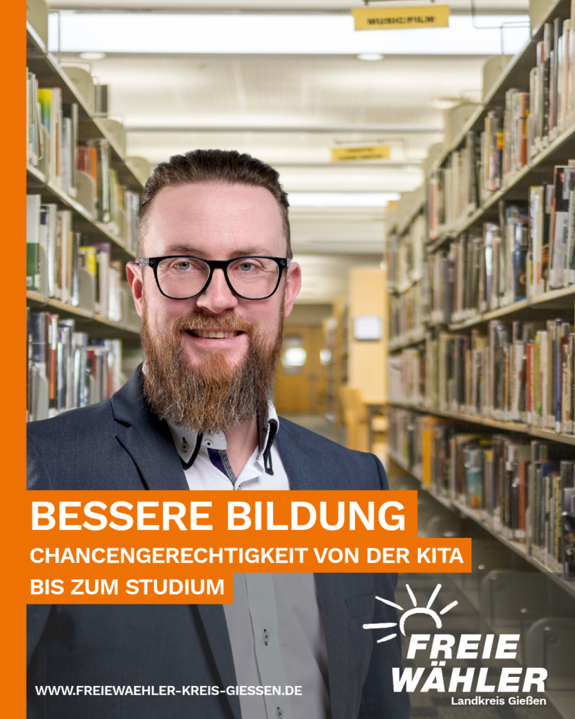Bildung ist die wichtigste Investition in die Zukunft – davon ist Björn Feuerbach, Kreisvorsitzender der FREIE WÄHLER Gießen und Spitzenkandidat, überzeugt. Er fordert, die Bildungsbedingungen im Landkreis konsequent über alle Lebensphasen hinweg zu stärken – von der frühkindlichen Betreuung über die Schulen bis hin zu den Hochschulen.